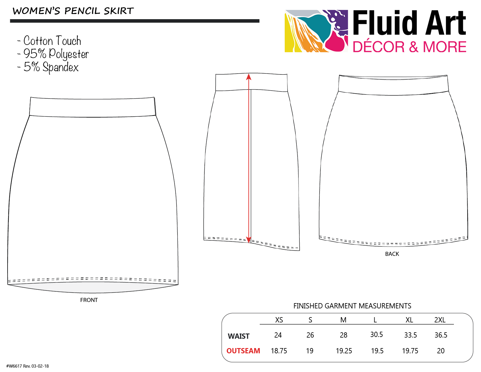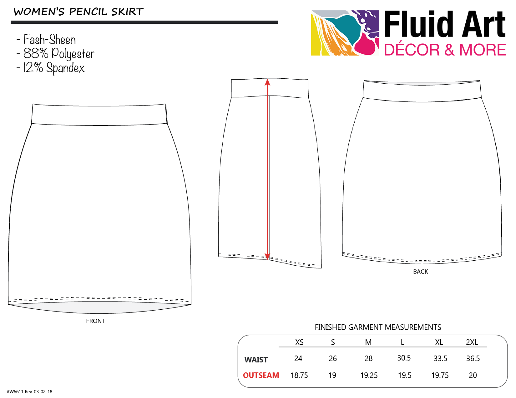 Our trendy pencil skirts feature a 4" wide stretch waistband for versatile fit. Can be worn high on the waist or folded down low on the hips. Full circle skirt, roll to roll all-over-printing, custom cut and sewn. Our 88% polyester/12% Spandex Fash-Sheen fabric is bright and vibrant with a glossy sheen.